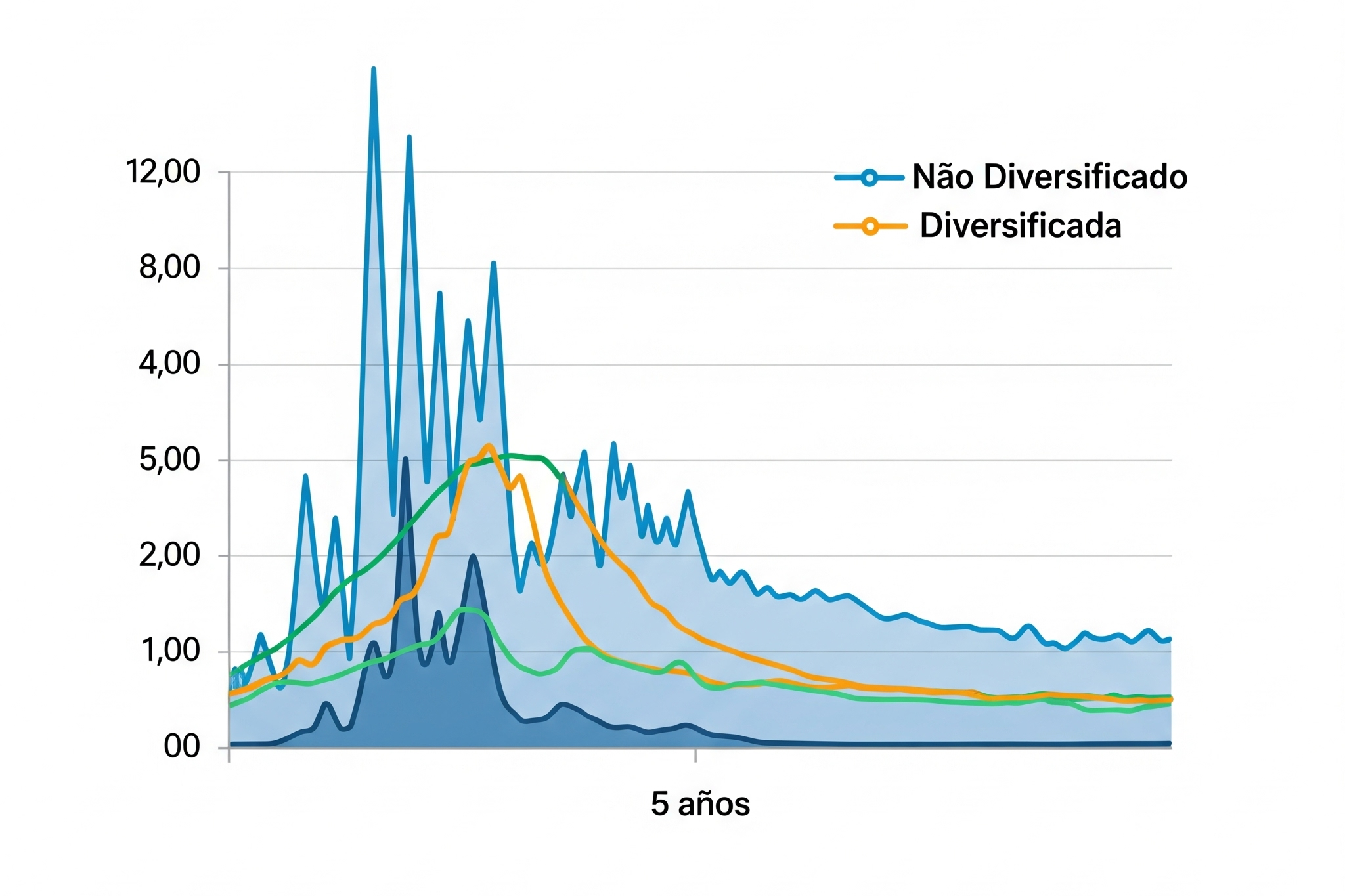 - Diversificação Excessiva (Diluição): Comprar “mil” ativos diferentes sem critério pode diluir seus retornos. Você acaba com uma “salada de frutas” onde os bons resultados se perdem nos medíocres. Foco em qualidade, não em quantidade.